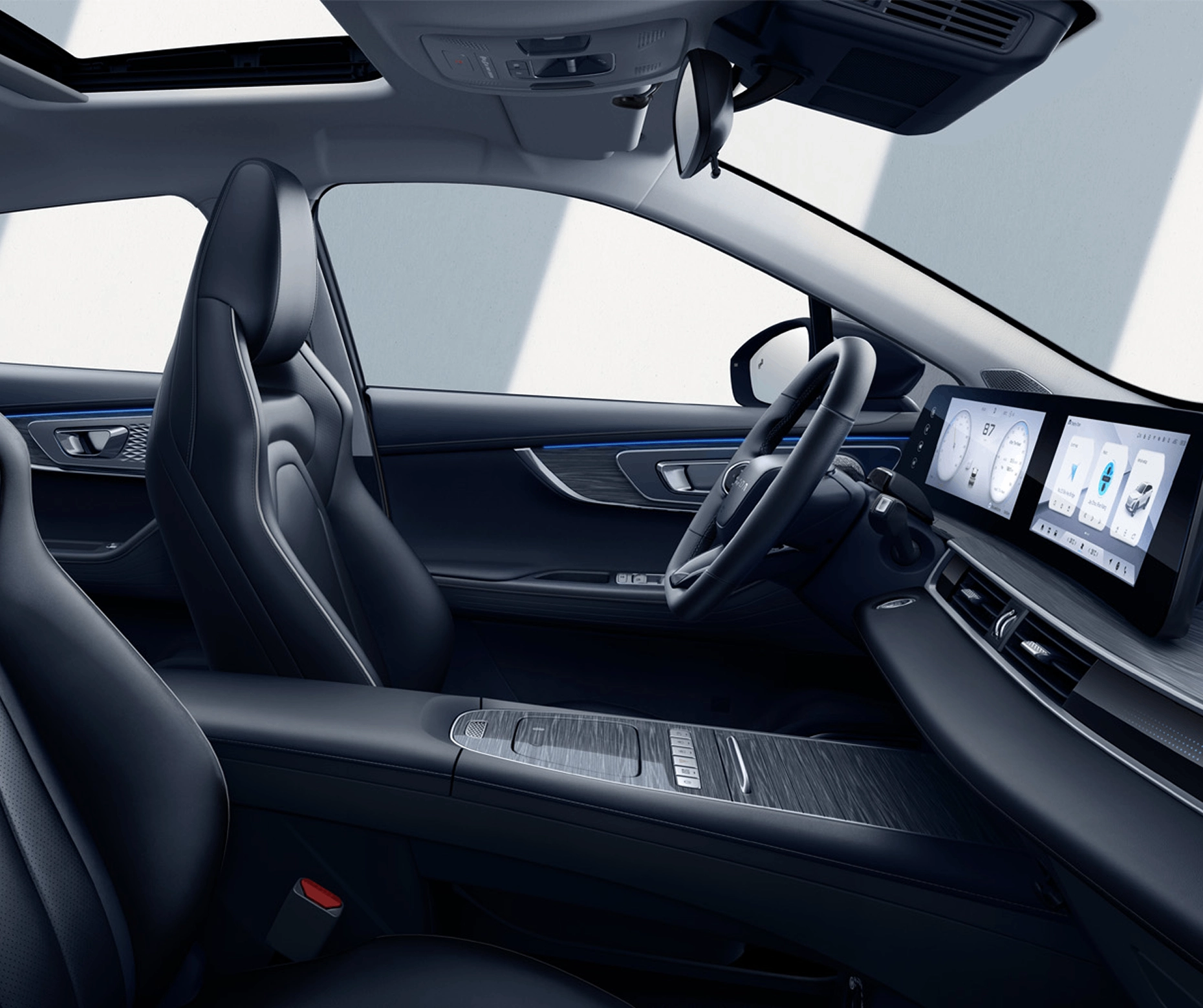 Het leven aan boord van de OMODA 5 SHS-H wordt bepaald door geavanceerde technologie. Twee hoogwaardige 12,3-inch displays bieden duidelijke en gedetailleerde informatie, terwijl de sfeerverlichting in het interieur kan worden aangepast met een breed scala aan kleuren. Het voertuig beschikt bovendien over draadloos opladen en een hoogwaardige audioset. En dit zijn slechts enkele van de vele technologische innovaties die de OMODA 5 SHS-H te bieden heeft.